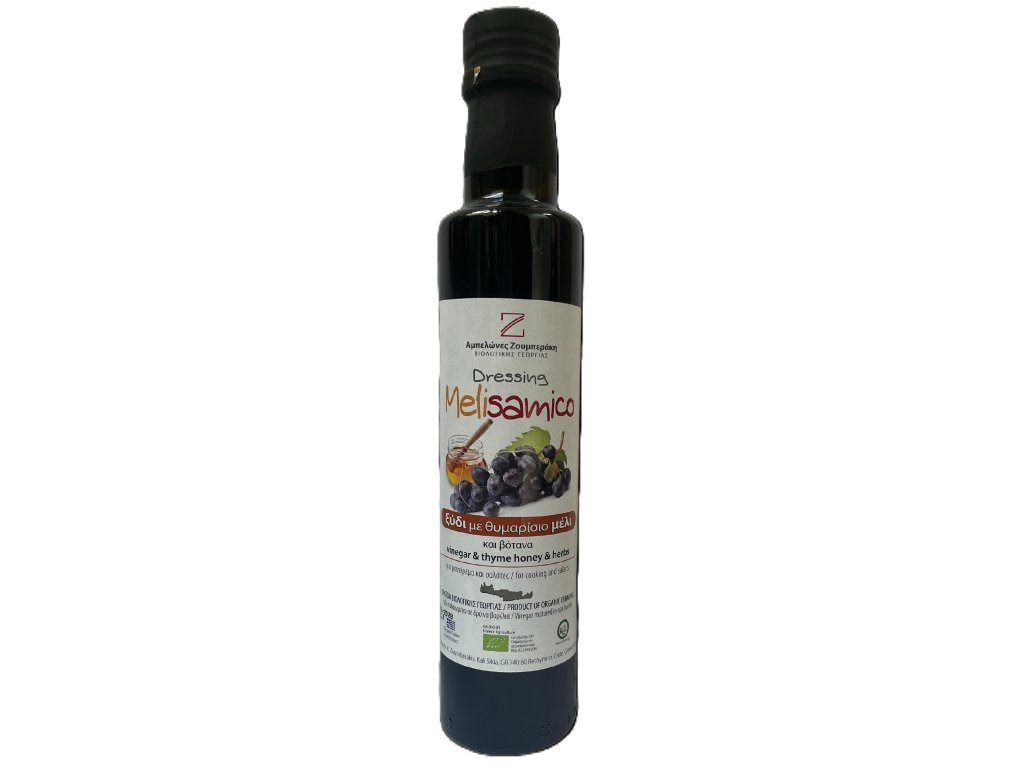 Octový dresing Zoumberakis s tymiánovým medem a bylinkami – vinný ocet, tymiánový med, bylinky.