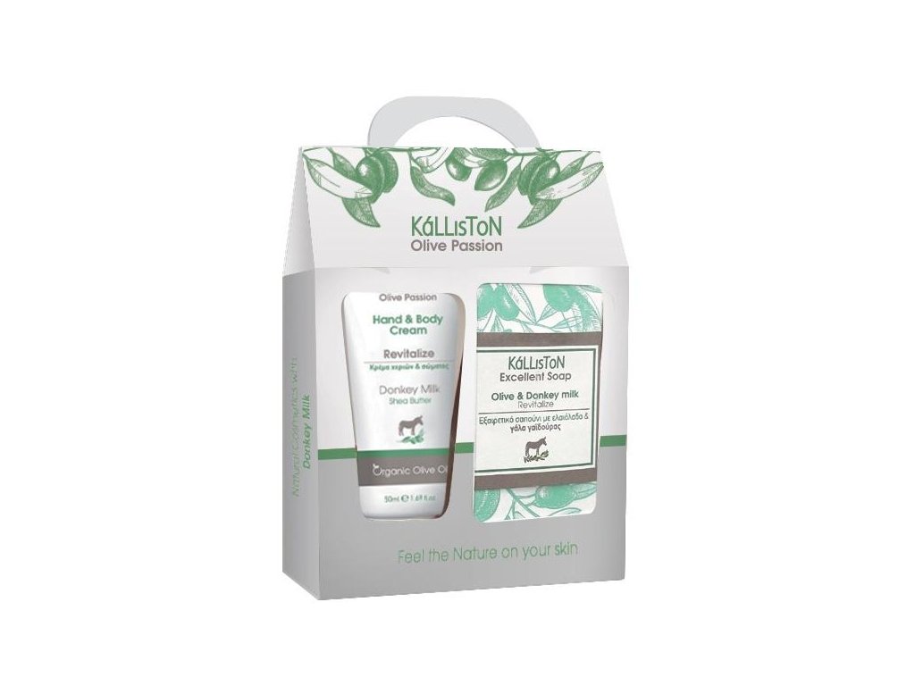Dárková sada Kalliston spojuje krém na ruce a tělo 50 ml a přírodní mýdlo 100 g s oslím mlékem. Produkty s bio olivovým olejem a bambuckým máslem hydratují, vyživují a revitalizují pokožku.