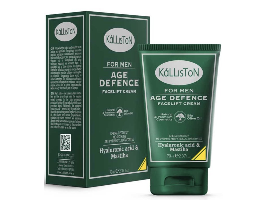 Kalliston krém proti vráskám je speciálně vyvinutý pro mužskou pleť. Díky lehké textuře se rychle vstřebává, nezanechává mastný film a je vhodný i pro okolí očí. Extrakt z mastiky poskytuje silnou antioxidační ochranu, kyselina hyaluronová hydratuje a přírodní oleje zajišťují pružnost a výživu pokožky.