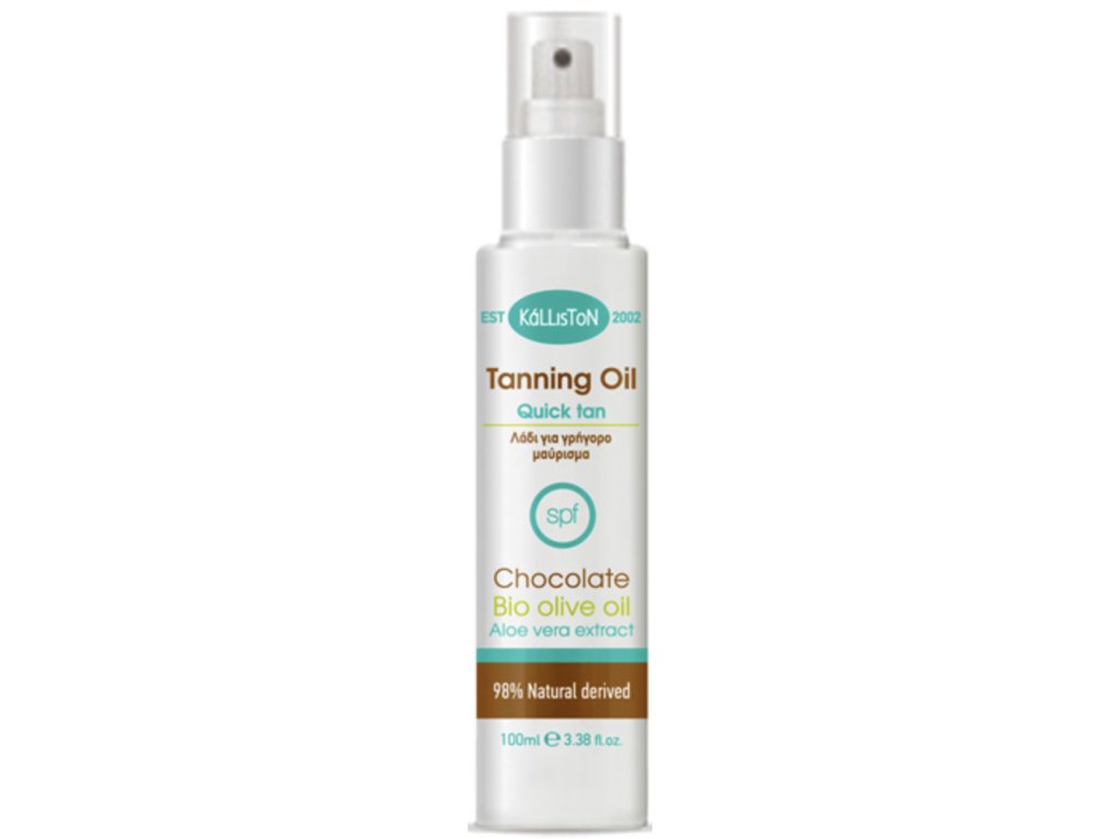 Přírodní rychloopalovací olej Kalliston s čokoládovou vůní a bio olivovým olejem podporuje rychlé a přirozené opálení. Aloe vera pomáhá udržovat pokožku hydratovanou a hebkou.