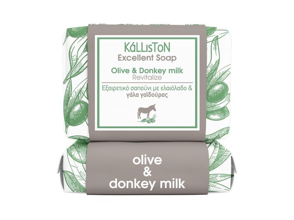 Přírodní mýdlo Kalliston s oslím mlékem a olivovým olejem. Jemně čistí, revitalizuje a hydratuje pokožku. Vhodné pro každodenní použití na celé tělo.