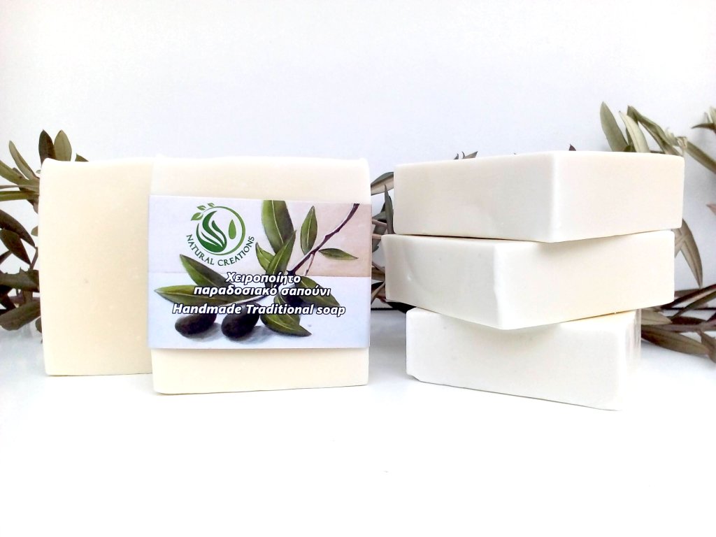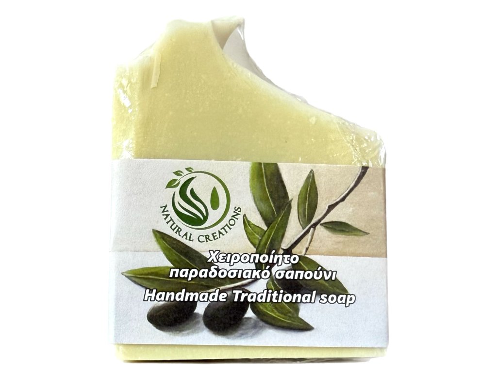 Ručně vyráběné tradiční mýdlo Natural Creations z 100% extra panenského olivového oleje. Jemné, hypoalergenní a vhodné i pro citlivou pokožku a kojence. Certifikovaná první kvalita.