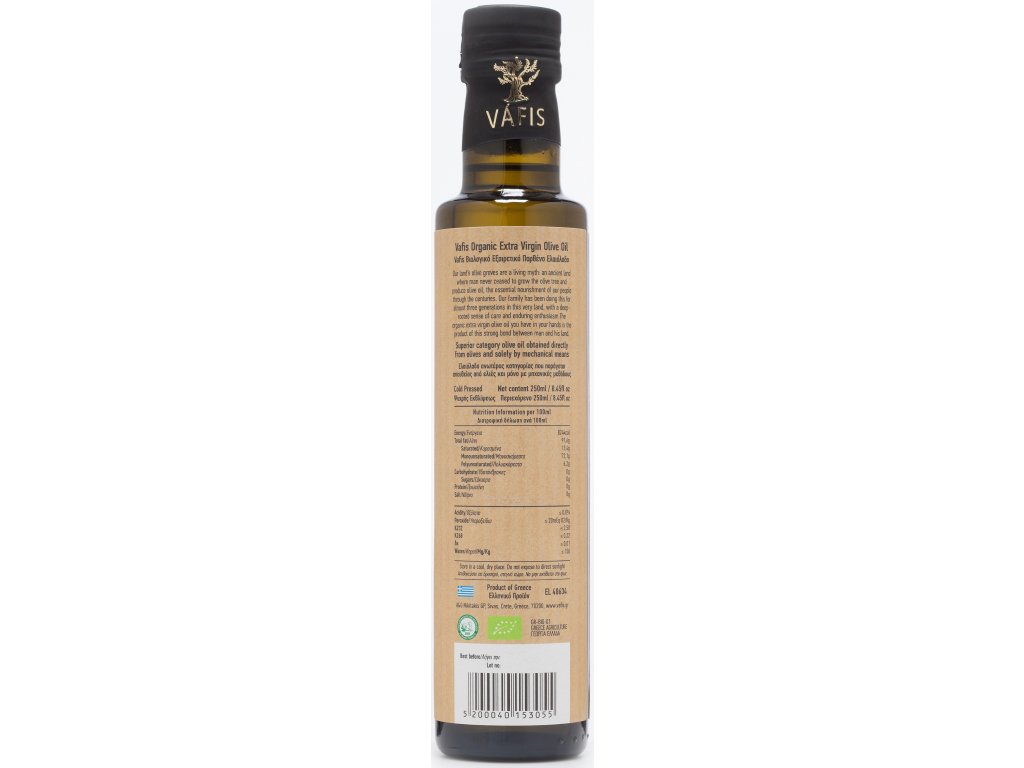 Olej pochází z oliv odrůdy Koroneiki, pěstovaných v ekologických hájích na Peloponésu v Řecku.