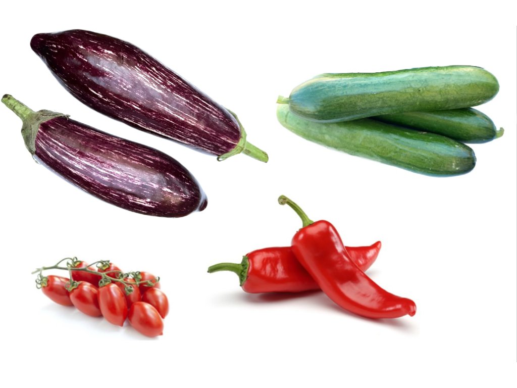Farmářská zelenina z Kréty – mix rajčátek, baby okurek, paprik a lilků