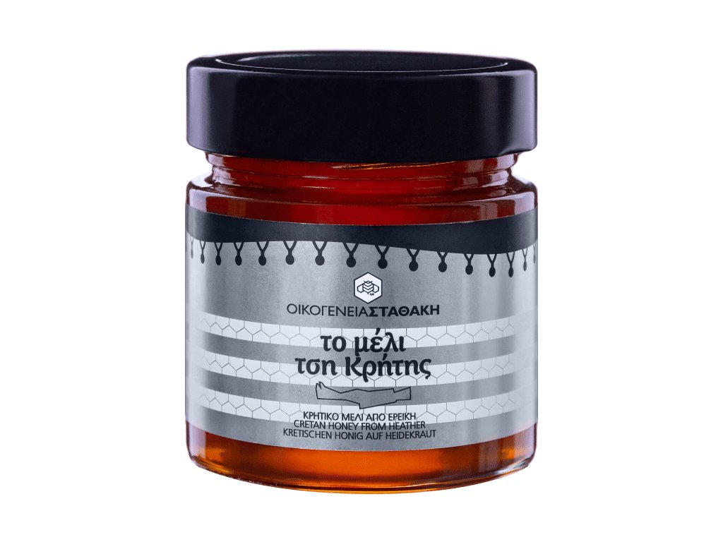 Prémiový vřesový med STATHAKIS z Kréty s karamelovou chutí. Mezinárodně oceňovaný med, vhodný i pro francouzské perníky.