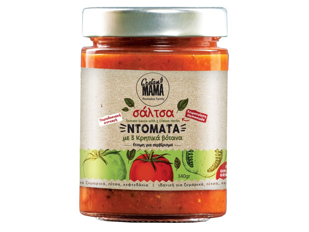 Výborná domácí omáčka ze zralých krétských rajčátek je ideální na těstoviny, pizzu nebo masové kuličky. Rajčatová omáčka se 3 krétskými bylinkami – oreganem, tymiánem a bazalkou je kulinářským požitkem, který přináší autentické chutě Středomoří přímo na váš talíř. Omáčka je dokonalým spojením čerstvých zralých rajčat a aromatického olivového oleje se směsí cibule a česneku.